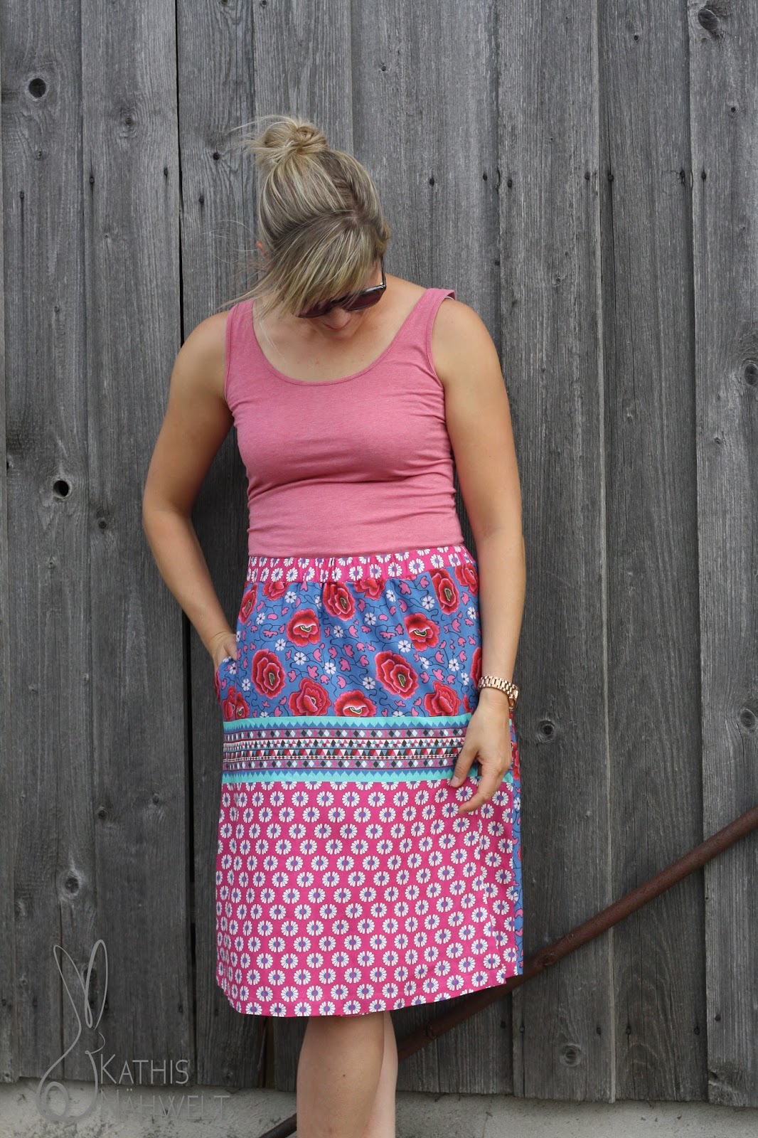 unterschiedlichen Längen nähen. Ich habe hier die Variante bis zu den Knien genäht. Das ist normalerweise gar nicht meine übliche Länge bei Röcken, gefällt mir hier aber irre gut.
